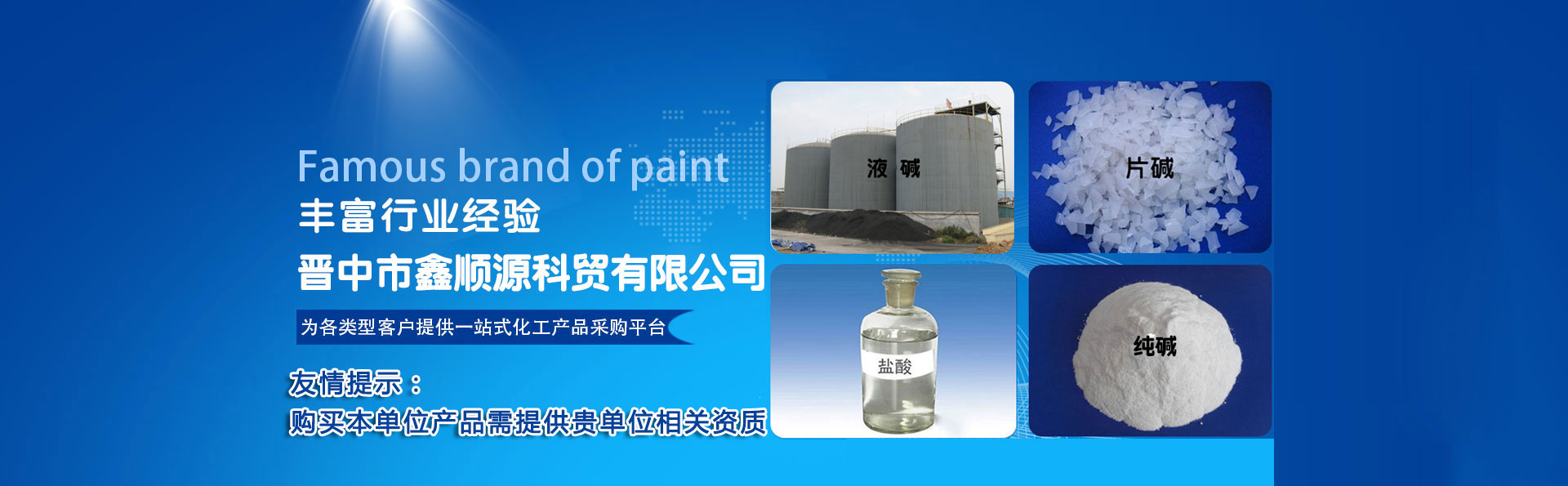 晉中市鑫順源科貿有限公司成立于2012年9月4日,位于榆社縣東大街大寺路,有安監(jiān)局頒發(fā)的中華人民共和國危險化學品經營許可證和非藥品類易制毒化學品經營備案證明,主要經營鹽酸、次氯酸鈉、液堿 、 片堿 、純堿 、 硫酸 、 聚合氯化鋁、 氯化鈣、氯化鋇、氯乙酸、氨水、水處理劑等危險化學品的銷售及運輸......
